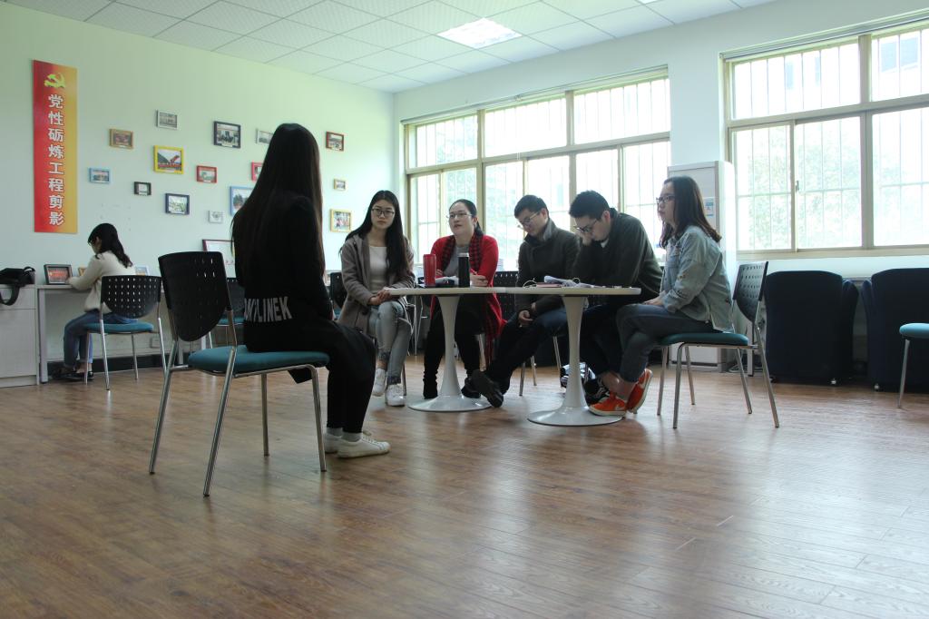 答辩会开始前,答辩学生在社团联活动室内等候答辩。答辩开始,学生依次进入会议室进行答辩,在进行自我介绍后,就大学成绩、任职情况、获奖情况、参与公益活动或其他活动情况和自我评价五个方面向老师们进行思想汇报。参与的学生向组织充分展示了他们良好的素质风貌,表明了渴望得到党组织接纳的诚恳心情。其次,由答辩委员会成员就有关党的相关知识进行提问,答辩同学需根据自身对知识的理解进行阐述回答,以考察拟发展对象对党的基本知识的理解和掌握程度。