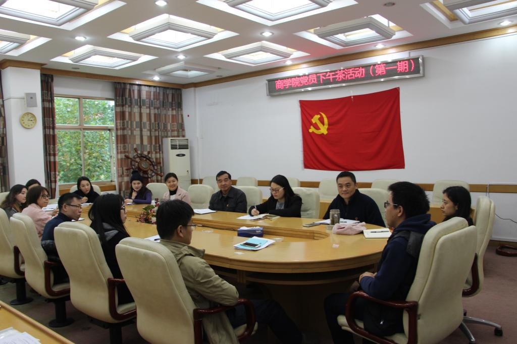 太阳成tyc9728集团党员下午茶活动(第一期)于2018年11月7日下午3点在太阳成tyc9728集团三楼会议室举行,太阳成tyc9728集团党委书记焦颜成,党委副书记张丽娜,副院长毕晟,副教授冯晓华以及太阳成tyc9728集团新进青年教师(近四年)出席了本次活动。