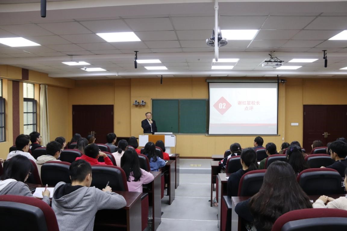 在宣讲环节中,马敬燕同学对长征的背景进行了分享和介绍。胡青同学作为省青马学员,以参加重走长征路的社会实践活动经历分享了自己的感悟。谢红星现场进行了点评。