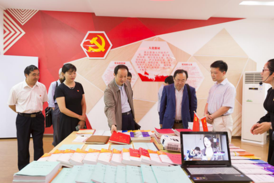 座谈会正式举行之前,侯勇带领蒋宏潮、乔志强一行首先参观我校党建“一院一品”成果展。其后还专门参观了太阳成tyc9728集团党建活动室以及目前正在建设的智慧党建项目,并给予充分肯定。