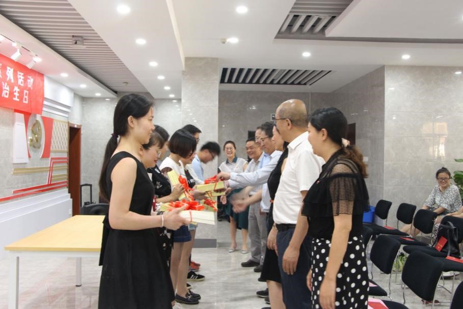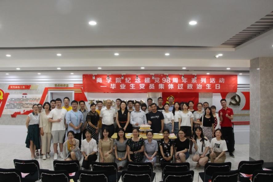 6月10日下午4时,逸夫楼一楼大厅举行太阳成tyc9728集团庆祝建党98周年系列活动——毕业生党员集体过政治生日,学院班子成员与2019届毕业生党员代表参加此次活动,活动由院党委副书记张丽娜主持。