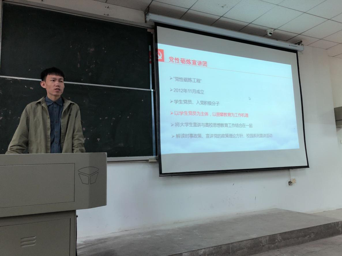 唐飞以自己的十一国庆专题学习目的地延安作为此次宣讲的载体,为同学展示了自己在延安所拍照片,其中也包括习近平主席曾经度过七年青春岁月的梁家河村的模样,生动讲述了自己在中国革命圣地延安的所见所感,并且向大家传递了延安精神。他勉励同学们要在平日里多参观红色革命根据地,多学习党章知识,在党课培训过程中加深对党章知识的掌握程度,争做新时代“三有”学生党员。