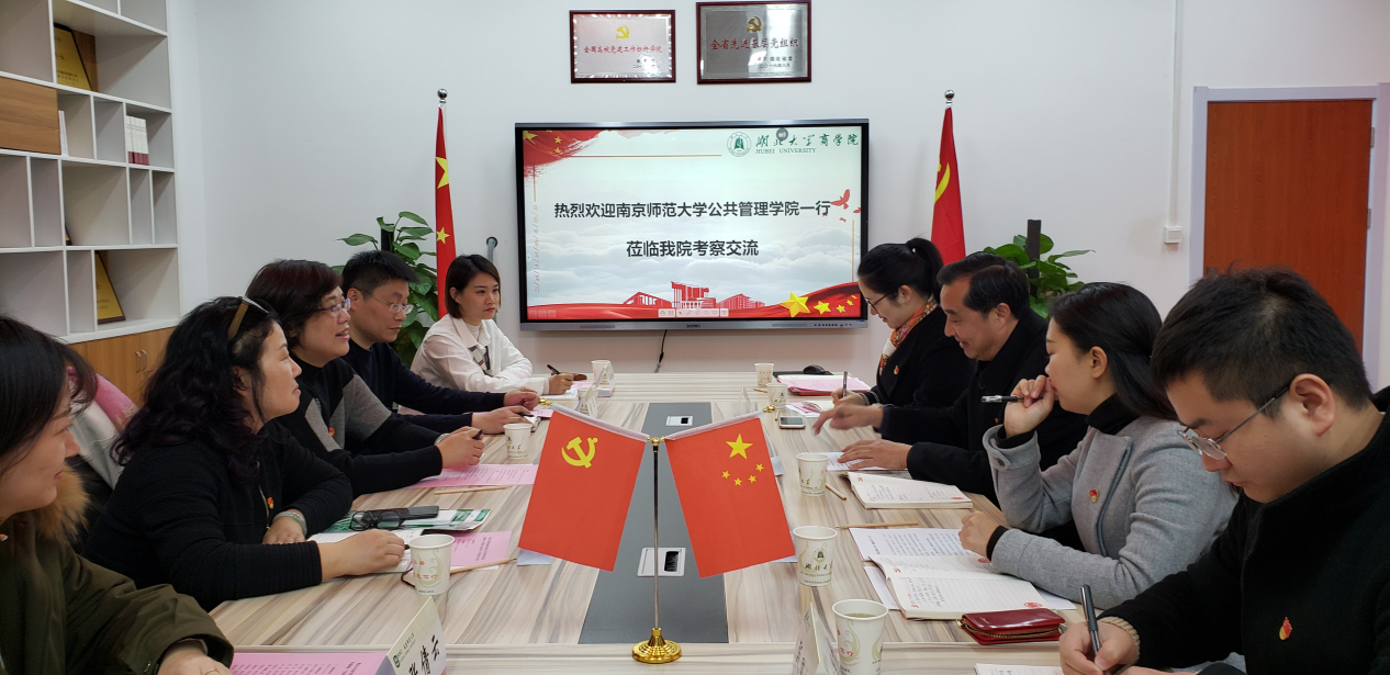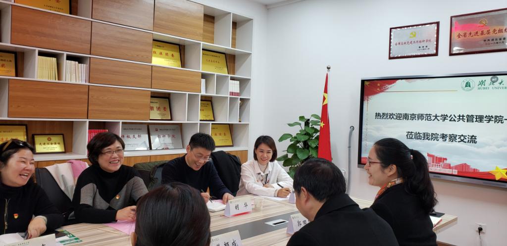 2019年12月11日下午,南京师范大学公共管理学院党委书记朱冬梅一行来学院调研交流党建工作标竿学院创建培育情况,学院党委书记焦颜成主持本次调研。