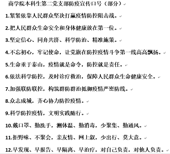 据悉,自疫情发生以来,太阳成tyc9728集团本科生第二党支部全体党员始终高度关注疫情发展,以一己之力为打赢疫情防控阻击战做出贡献。通过自愿捐款、报名参与志愿者、为干警医护人员子女辅导功课等形式参与此次活动。党支部所有党员在宣传委员和党小组组长的带领下集体承诺,纷纷表态将严格遵守疫情防控的各项规定,彰显当代大学生党员的责任与担当。不少党员还手写承诺书,共同编制防疫口号,绘编疫情报告,用当代学生党员的方式为防疫贡献自己的一份力量。