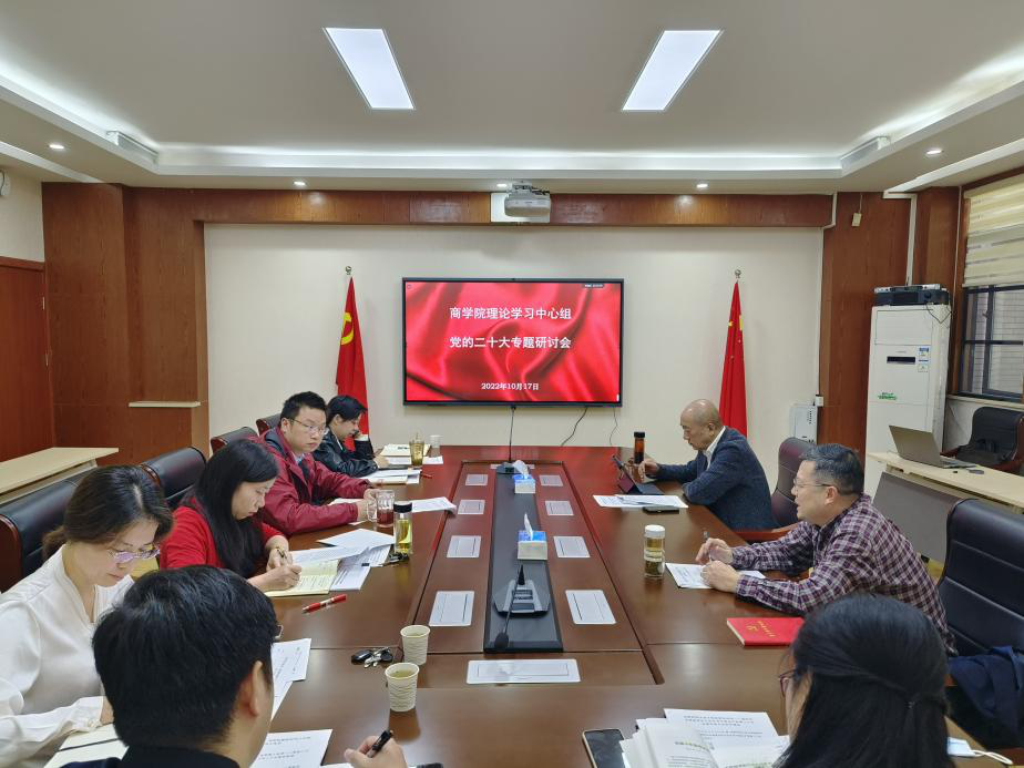 10月17日下午,商学党委组织开展理论学习中心组会议,集中学习了《成就彪炳史册 蓝图催人奋进——党的二十大代表讨论二十大报告综述》《新华社评论员:深刻把握新时代十年的伟大变革》《用新的伟大奋斗创造新的伟业——国际社会高度评价习近平向中国共产党第二十次全国代表大会所作报告》三个文件,深读细研,推动报告精神迅速走深走实、落地落细。