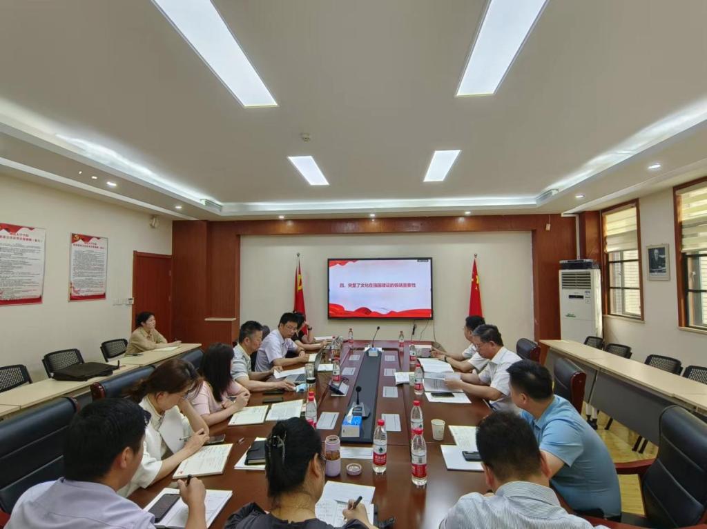 校督导组现场巡听旁听学院党委中心组理论学习活动。学院党委书记邵俊青以“学习习近平总书记在文化传承发展座谈会上的重要讲话精神”为题进行领学,系统学习习近平总书记在文化传承发展座谈会上的重要讲话精神。