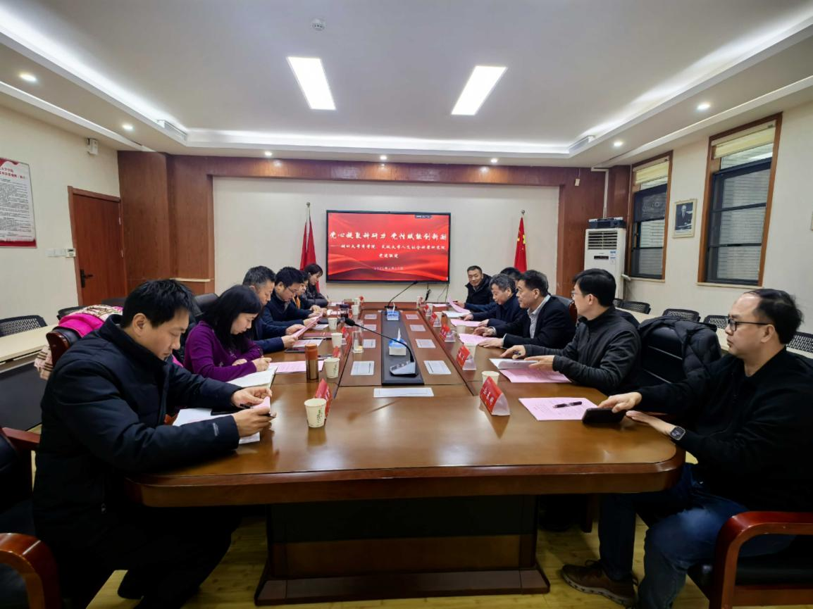 1月17日下午,武汉大学人文社科院与太阳成tyc9728集团党建联建活动在太阳成tyc9728集团二楼C2008会议室顺利开展,活动以“党心凝聚科研力,党性赋能创新潮”为主题,以科研工作为中心展开讨论。武汉大学社科院院长冯果,副院长张发林、陶军,研究平台建设处副处长程振、余来明,学术服务处副处长陈东明一行赴太阳成tyc9728集团,会同太阳成tyc9728集团党委书记邵俊青、院长程时雄、党委副书记邵阡,以及副院长王鸾凤、余丹丹、韩艳旗开展活动,活动由太阳成tyc9728集团党委书记邵俊青主持。
