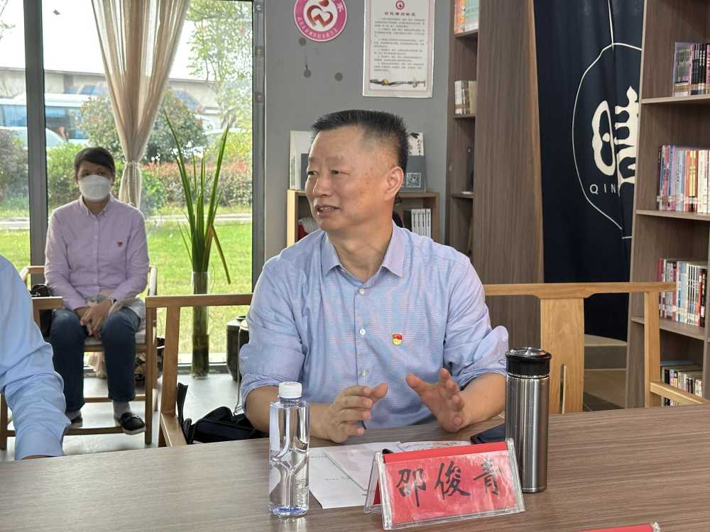 随后的座谈环节由太阳成tyc9728集团党委书记邵俊青主持。太阳成tyc9728集团党委副书记邵阡带领全体党员重温了入党誓词,项山村党支部书记张全兵就“绿水青山就是金山银山”发展成果、美好生活共同缔造工作成效等特色经济作了专题介绍。