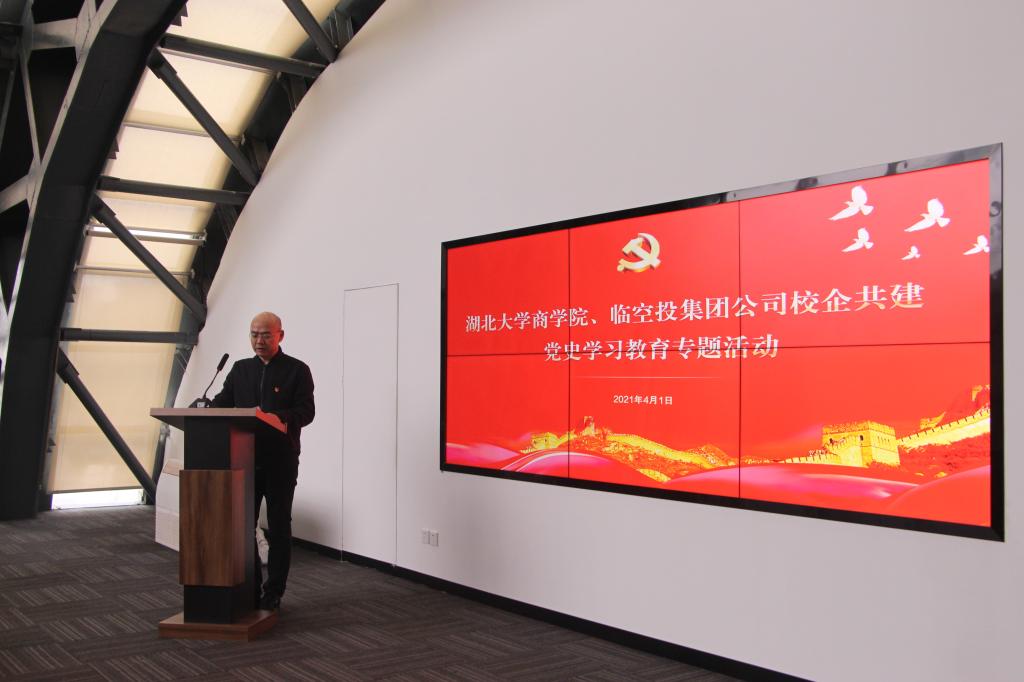 4月1日,太阳成tyc9728集团党委走进临空投集团公司,与该公司党委联合开展党建联建——“党史学习教育”主题党日活动。太阳集团网tyc9728副校长肖德,太阳成tyc9728集团全体领导班子成员、新一届教工党支部委员代表、学生党员代表一行40人以及临空投集团公司班子成员、中层干部和所属各单位班子成员参加了此次活动。活动由临空投集团公司纪委书记曾庆东主持。