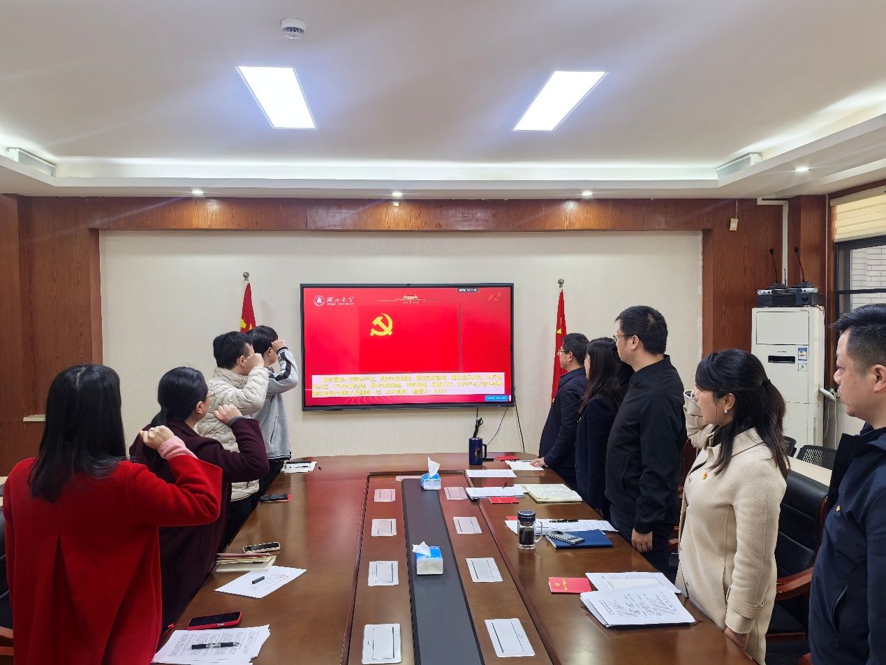 会议分为两个阶段。主题党日活动阶段,在通报了党员参会及党费缴纳情况后,依次完成奏唱国歌、重温入党誓词、学习党章等规定动作,进一步强化了党员意识、坚定了理想信念、提升了政治修养。
