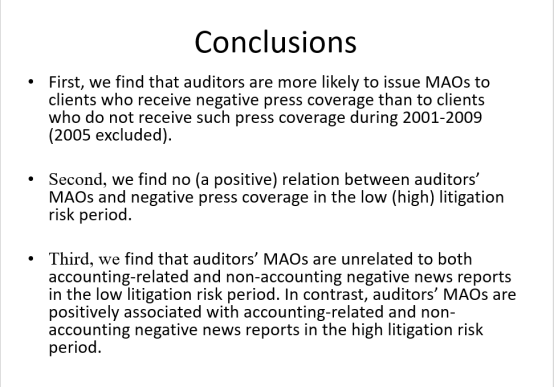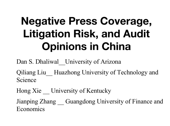 刘启亮教授在本次讲座上分享的论文主题为《Negative Press Coverage, Litigation Risk, and Audit Opinions in China》,刘启亮教授分享了这篇论文的研究动机、模型构建、模型分析和研究结论。
