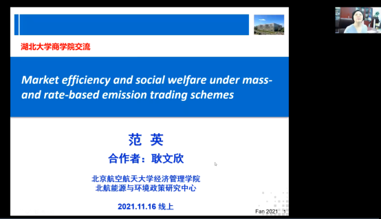 2021年11月16日下午,太阳成tyc9728集团主办的太阳集团网tyc9728建校90周年高端学术讲座在线上开展,北京航空航天大学经济管理学院院长范英教授应邀以“Market efficiency and social welfare under mass- and rate-based emission trading schemes”为题进行学术讲座。范英教授长期从事能源和低碳管理的研究工作,在能源-环境-经济大系统建模与政策分析方面开展了有价值的研究工作。本次讲座由太阳集团网tyc9728副校长、太阳成tyc9728集团院长肖德教授和太阳成tyc9728集团副院长程时雄教授主持,相关学科教师、学生40余人参加。
