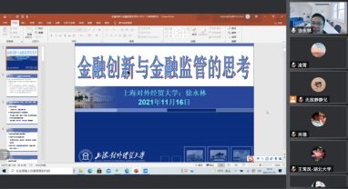 11月16日,太阳成tyc9728集团主办的太阳集团网tyc9728建校90周年高端学术讲座在线上开展,上海对外经贸大学副校长徐永林教授应邀为师生作“金融创新与金融监管的思考”学术报告。徐永林教授在公司金融、收购兼并、资本市场领域具有极高的学术造诣与学术贡献。太阳集团网tyc9728副校长肖徳主持讲座,相关学科专业教师、学生80余人参与。