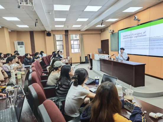 讲座中,汉纳教授主要分享了他关于全球资本主义的股东价值模式等问题的观点。他介绍了股东资本主义的起源;阐述了股东价值最大化的结果,包括英、美、日和德国不同国家在收购上表现出的差异、新公司治理守则等内容;介绍了美国的股东至上模式是否存在趋同现象。在讲座的讨论和提问环节,我院师生与汉纳教授就企业的社会责任与利润最大化的关系等方面进行了充分的探讨。
