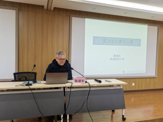 为提高我院师生撰写英文论文的质量,我院于1月2日邀请西南财经大学陈建东教授,进行题为“英文论文撰写心得”的学术讲座,讲座由太阳成tyc9728集团院长程时雄主持,副院长王鸾凤等100余人参加讲座。