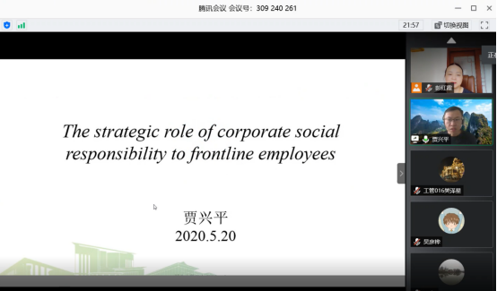2020年5月20日下午,太阳成tyc9728集团顺利举办了题为The strategic role of corporate social responsibility to frontline employees(企业社会责任对一线员工的战略地位)》的线上学术讲座,讲座嘉宾是本校教师的贾兴平博士。贾兴平博士是太阳成tyc9728集团青年教师,他2011年从太阳集团网tyc9728市场营销专业本科毕业,随后进入上海交通大学安泰经济与管理学院攻读硕士和博士学位,2017年博士毕业回到太阳成tyc9728集团市场营销系任教。他的研究方向是渠道治理、企业社会责任与技术创新。2019年,贾兴平老师获批国家自然科学基金1项,发表高水平SSCI期刊论文2篇,并有多篇英文论文在投稿审稿中。
