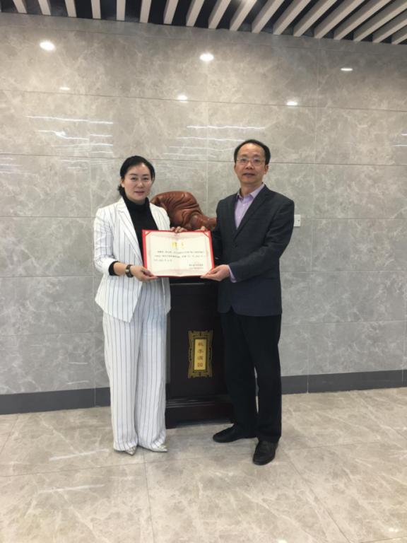 (图:商科专业学位教育中心杨俊主任向郑玉鸿女士颁发聘书
