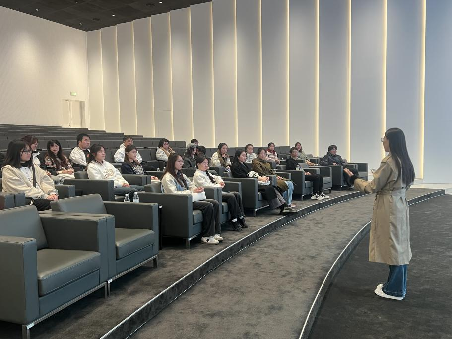 随后,学生们前往展厅会议室观看了联影医疗的宣传片,深入了解了联影医疗的发展轨迹。在展厅会议室,校友邓梦菲化身职业生涯规划微课主讲人,结合自身成长历程,从校园项目经历到职场规划,给学生们带来了一堂生动的职业生涯规划课。微课内容涵盖了如何根据自身兴趣和能力选择合适的行业,以及如何在职业道路上做出明智的规划和决策。微课后同学们就学业与项目如何平衡、职业发展的抉择思路踊跃提问,校友邓梦菲逐一回答,内容详尽。