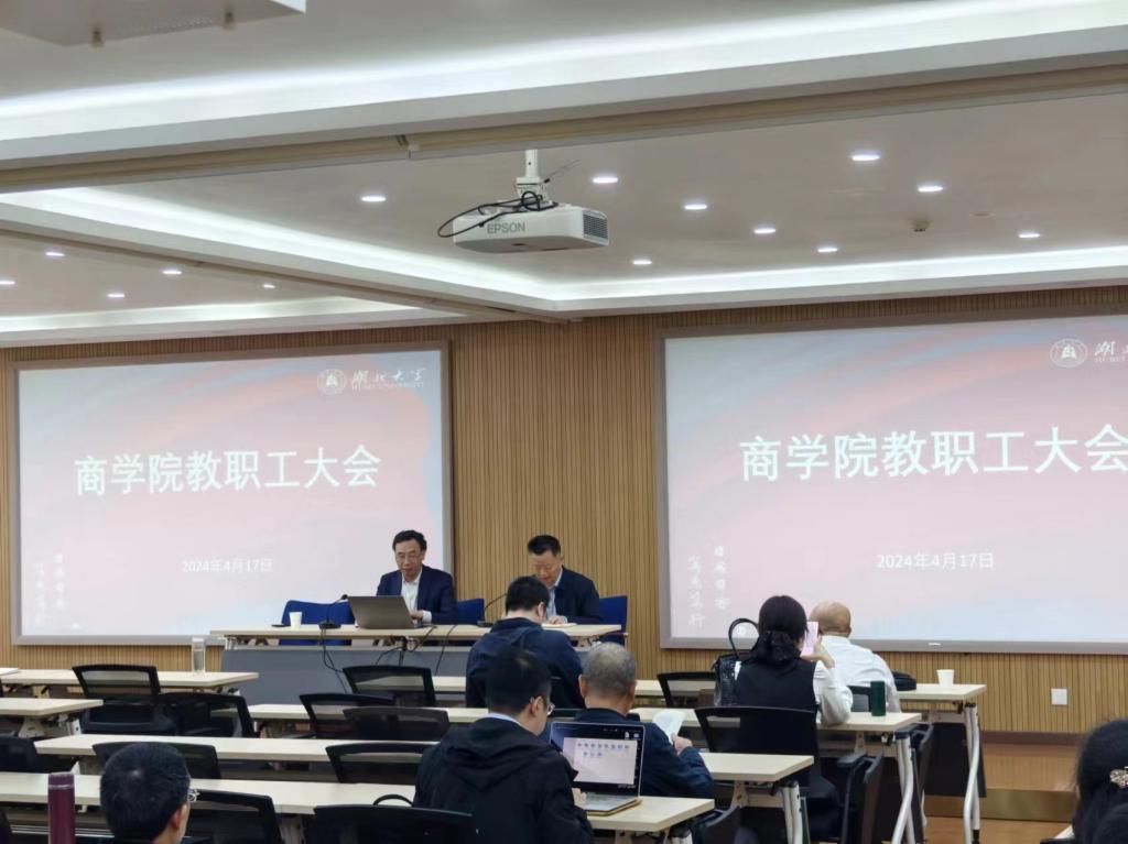 副院长程时雄针对国家社科基金申请及结项工作作了动员和解读;党委副书记邵阡强调了学生安全教育的重要性,通报了2024届毕业生就业情况,并就招生、校友、宣传等方面工作进行了安排部署。