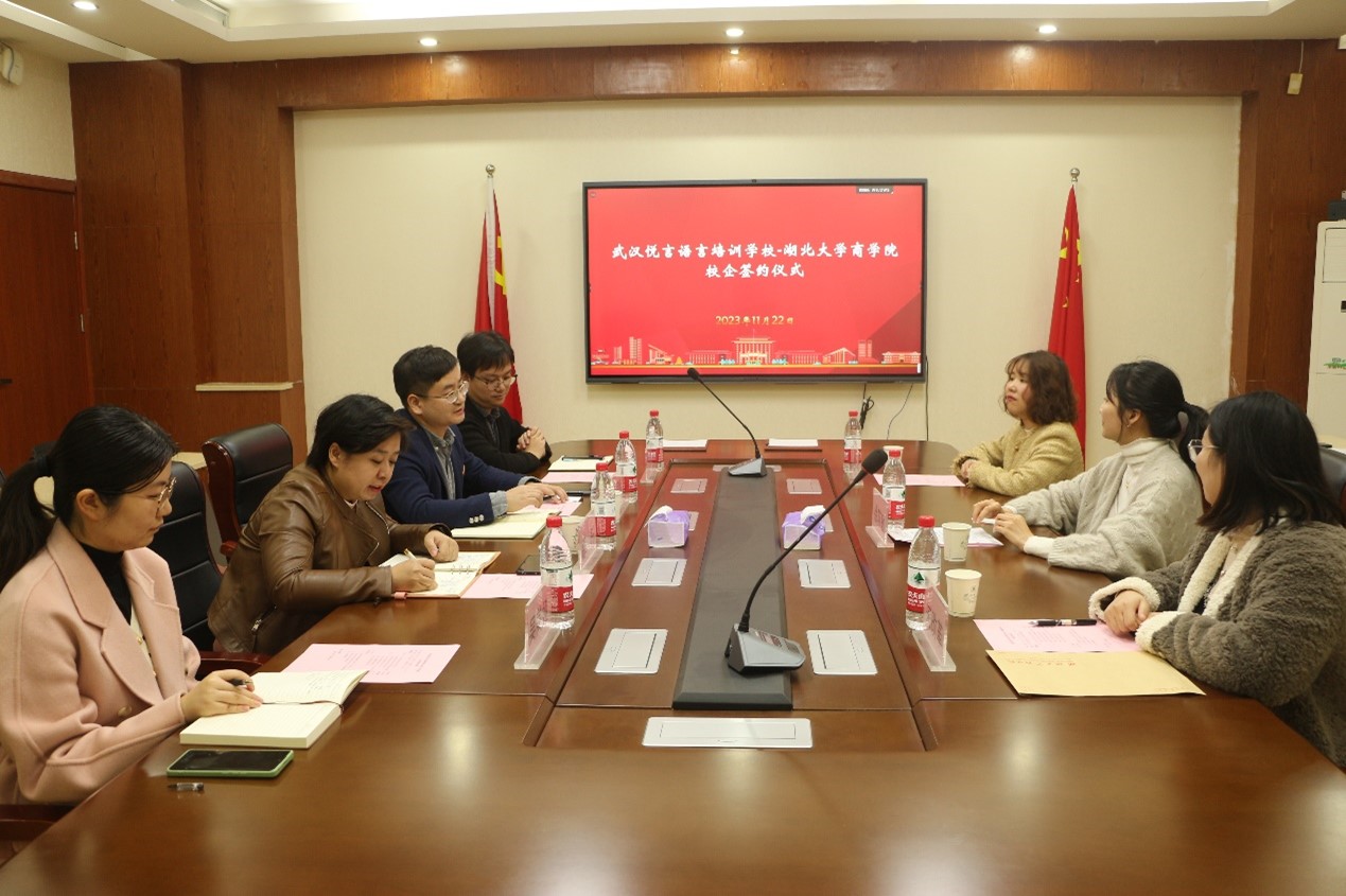 11月22日,太阳成tyc9728集团与武汉悦言语言培训学校校企合作签约仪式在逸夫楼C2008会议室举行,太阳成tyc9728集团党委副书记邵阡,学工办辅导员甄国辉、吴美娅、胡俊杰,武汉悦言语言培训学校校长徐苏敏、销售部经理宋改革、教师张晓玥参加签约仪式。