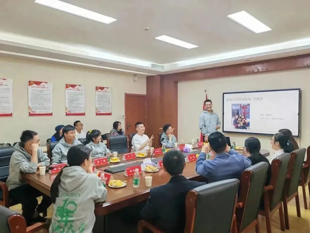 中午,师生在学校学术交流中心同品湖北味道、共忆美好年华、展望共同富裕之路。经济学系老师们介绍了十年来太阳成tyc9728集团和经济学专业在人才培养和学科建设等方面成果与现状,感谢大家对学院和专业发展的支持,欢迎大家常回家看看,祝愿同学们在各自岗位中取得更好的成绩。校友们也感慨万千,每一句肺腑之言都饱含了对母校的深切思念和对老师们的无限感恩。座谈会结束后,师生合影留念,校友们带着学院赠送的精美纪念品,怀着对彼此的美好祝愿,在一声声珍重中握手道别。校友们继续奔赴各自前程,期待下一个十年再聚。