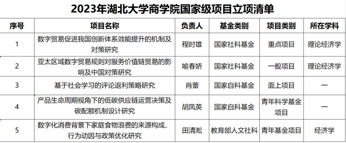 谨此,学院向获得立项资助的各位项目负责人表示热烈祝贺!同时希望全院教师再接再厉,争取国家级项目申报工作再创佳绩!