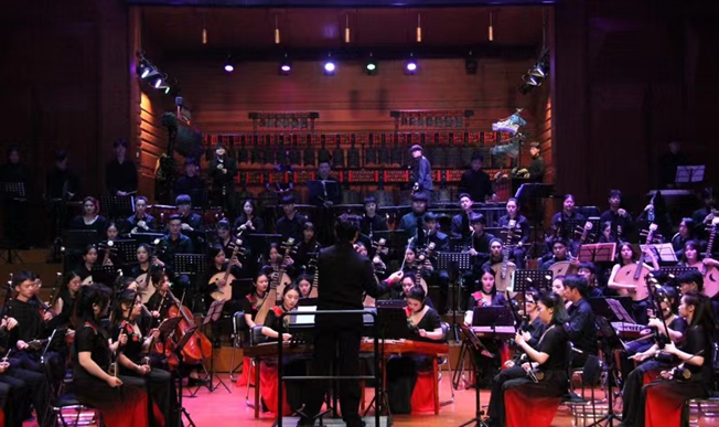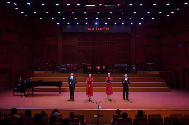 音乐会上,民乐合奏、编钟弦乐、诗词吟诵等各类形式的演出异彩纷呈。其中,由我院学生谢兆钧(中国台湾)等共同演出的诗朗诵《盛世中国》,在黄河协奏曲中,重温峥嵘岁月,讴歌民族复兴,擘画了跨越式发展下的美丽中国,真切表达了对祖国的深深热爱,赢得在场观众的阵阵掌声。到场观看的太阳成tyc9728集团金融学2001班学生张国庆激动地表示:“这次的活动让我们在音乐中感受到了流动的两岸情,看到我们班谢兆钧同学作为台湾学生代表上台演出,我们都非常自豪。”