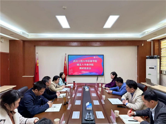 3月30日,武汉工程大学法太阳成tyc9728集团党委书记杨克平、党委副书记孙勇、副院长付书科和张艳等一行8人来我院调研,学院全体领导班子参加座谈。