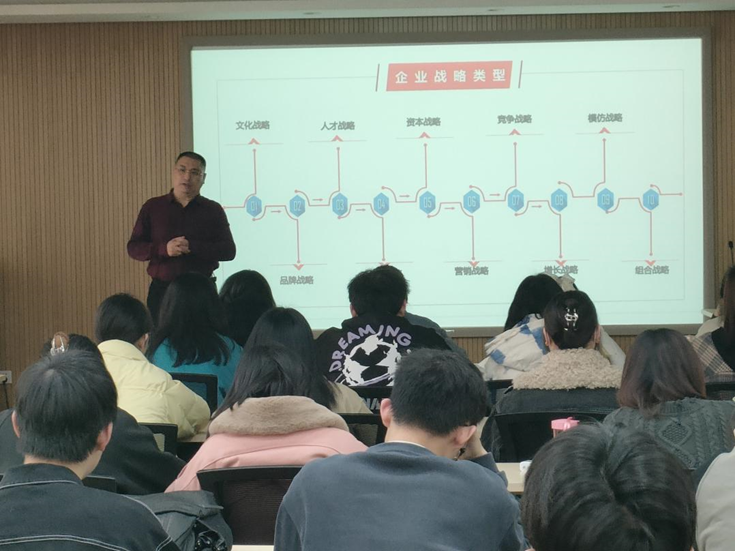 讲座中,他从企业战略概念、规划、目标、类型、实施等方面深入浅出地介绍了企业战略管理的核心内容,并为同学们重点讲解了文化、品牌、人才、营销、资源、资本、竞争六大战略。他旁征博引,联系生活和企业管理实际,为同学们上了一堂生动高效的企业战略管理课。
