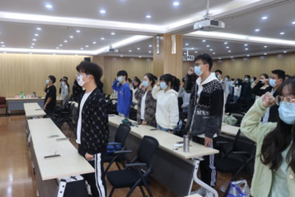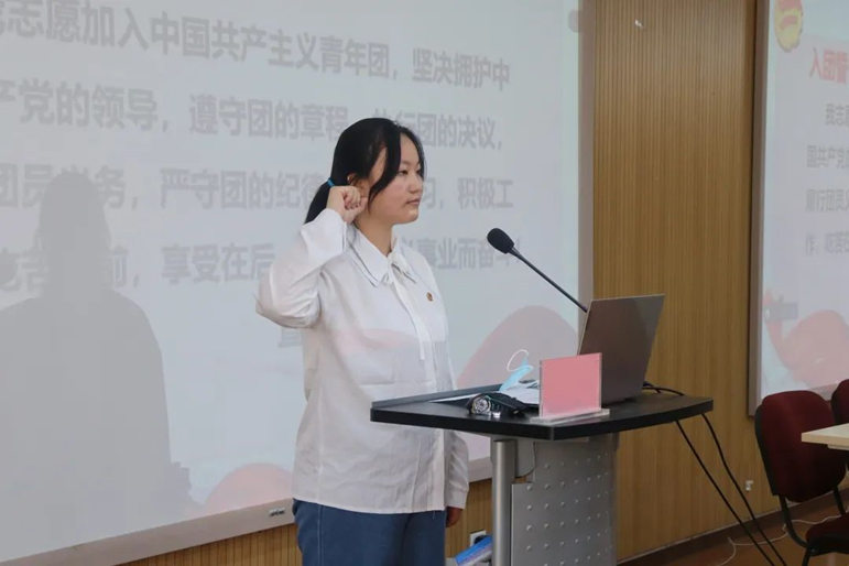仪式在庄严的团歌中拉开序幕,在何璇同学的带领下,与会学员重温了入团誓词。