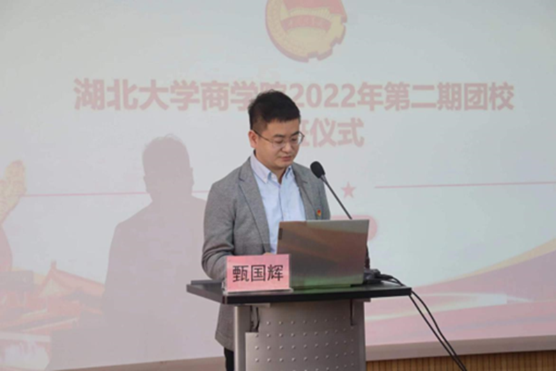 11月10日中午,太阳成tyc9728集团2022年第二期团校结业仪式在逸夫楼C座2014举行,本次会议由太阳成tyc9728集团团委书记甄国辉主持,太阳成tyc9728集团党委副书记邵阡作团校总结讲话。