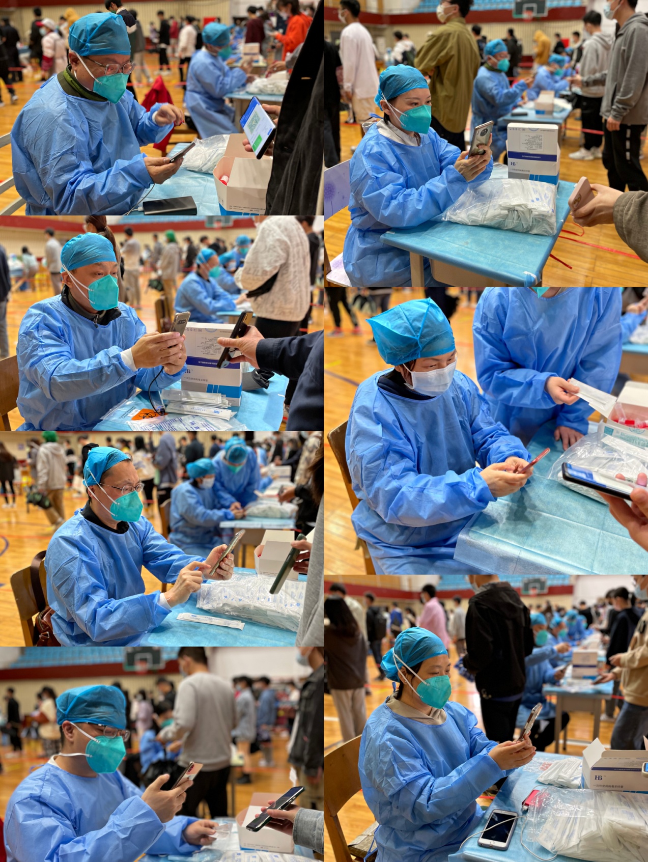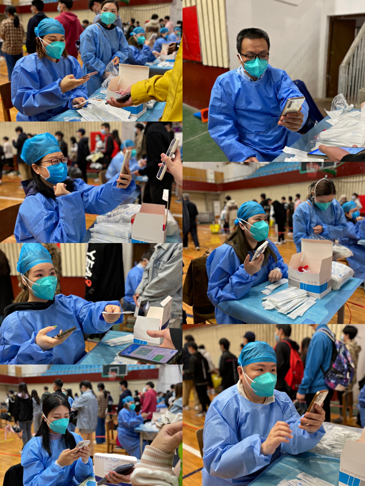 在工作过程中,太阳成tyc9728集团教职工志愿者严格遵守疫情防护要求,引导教职工有序排队,保持适当间距,为大家准确录入核酸信息,分发检测工具。
