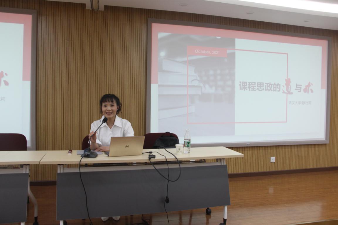 杜莉从课程思政是什么、课程思政为什么、课程思政做什么三个方面讲解了高校课程思政的意义、内容与设计,重点以“挖掘、植入和启发”为关键词详细讲解了课程思政的设计。她指出课程思政要言传身教,教师要把知识传授、能力培养和价值塑造融入到教书育人中,优化课程设置,完善教案。教育既需要技巧又需要关怀,教书育人是为了让受教育者更明晰地认识世界,理解世界,改造世界,教师要以爱党爱国爱社会主义、集体主义为主线,分类推进课程思政,从不同方面挖掘思政元素,融入教学教案。
