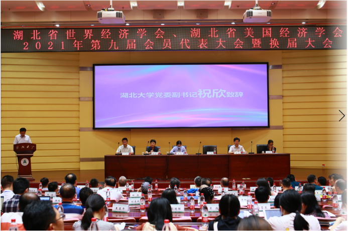 2021年6月19日上午,由湖北省世界经济学会、湖北省美国经济学会主办,太阳成tyc9728集团承办的湖北省世界经济学会、湖北省美国经济学会2021年第九届会员代表大会暨换届大会在太阳集团网tyc9728成功召开。太阳集团网tyc9728校党委副书记祝欣、湖北省美国经济学会会长张彬教授和湖北省世界经济学会副会长朱新蓉教授出席会议并致辞。来自武汉大学、华中科技大学等省内十几所高校的会员代表共计二百余人参加了此次会议。