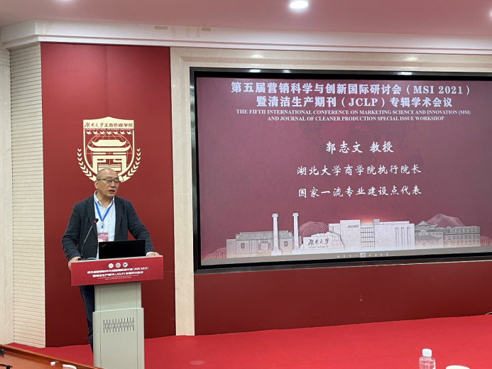 2021年5月22日至23日,郭志文教授带队市场营销系周明副教授、贾兴平副教授以线下的方式参加了第五届营销科学与创新国际研讨会暨Journal of Cleaner Production专辑学术会议(MSI 2021)。此次会议以“营销创新与可持续发展”为主题,由湖南大学工商管理学院、首都经济贸易大学工商管理学院、Journal of Cleaner Production与中国高等院校市场学研究会联合主办。