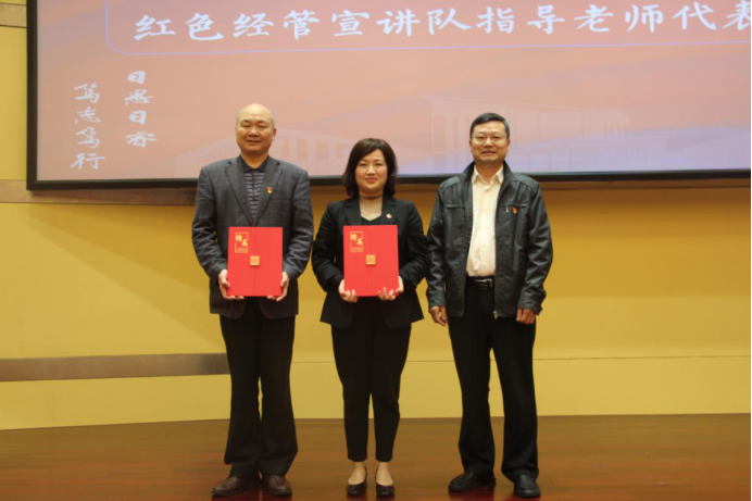 近日,太阳成tyc9728集团党性砺炼宣讲团“红色经管宣讲队”成立仪式在会议中心思睿厅举行举行,校党委书记谢红星出席仪式,学校相关职能部门负责人、太阳成tyc9728集团全体党委委员及师生党员代表参加了仪式。