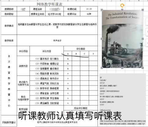 为做好线上教学质量监控,把准线上教学难点,学院要求授课教师必须针对线上教学做好课程设计的调整,并对课程资源的质量、教学大纲与教辅材料、学习考核方式、课堂教学纪律等内容提出清晰且详细的要求。学院成立了囊括全体领导班子成员、教工党支部书记和系部主任、教学管理人员和行政人员以及学生志愿者在内的督导团队,全面参与课堂、督导课程质量、及时反馈效果,很好地保证了教学活动的效率与成效。此外,各系部举办公开课、示范课、教研会等教学活动,集众人力量提升线上教学质量,推动一流本科课程的建设。