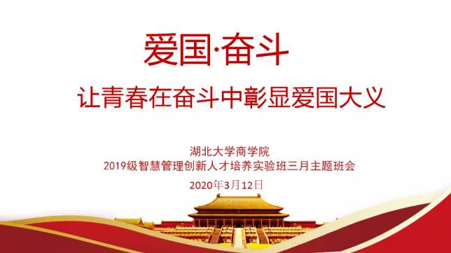 张丽娜首先带领大家一起学习了《习近平总书记在湖北考察新冠肺炎疫情时的讲话》,并从习近平总书记在武汉考察期间热情赞扬的人,强力部署的工作,以及在电视电话会议中提出的要求解读了讲话精神。同学们先后发言,畅谈宅家抗疫的情况,分亨所见所闻的感想。杨志珺同学坚定地说:“这次疫情让我们再一次看到了党和国家将人民群众的生命安全和和身体健康放在第一位。我们坚信,在党的坚强领导下,中华民族没有克服不了的磨难。生在种花家,何其荣幸!”严泠松是第一批申请参加太阳成tyc9728集团“守卫•守未”为武汉市公安民警子女提供线上课外辅导志愿服务活动的学生,他巧用专业老师教授的学习方法训练其辅导学生的批判性思维,在参与活动中感受志愿者们“但行好事,莫问前程”的信念和饱满热情,精神上受到一次深刻洗礼。曾心怡同学提出,虽然同学们居家开展着有条不紊的学习活动,但是大家仍然十分关心新冠疫情什么时候退出?武汉什么时候解除管控?大家都期待着春暖花开之时能早日回到沙湖之畔,湖大校园,与亲爱的老师和同学们相见。