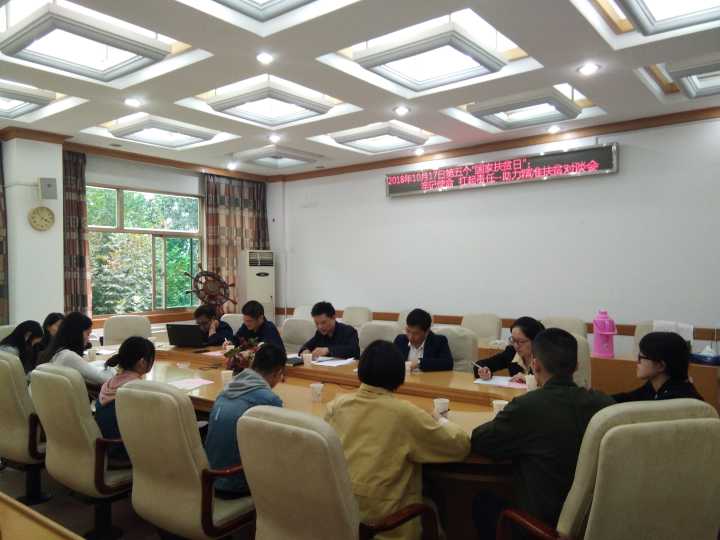 10月16日下午,太阳集团网tyc9728校团委召开“牢记使命,扛起责任——助力精准扶贫”座谈会。校党委副书记侯勇、校党委组织部正处级组织员杨世雄、校团委书记万路路、校精准扶贫工作队曾刚、太阳成tyc9728集团团委书记郭田田、暑期社会实践代表等参加此次座谈会。