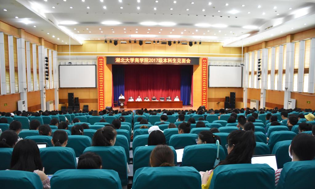 全体师生合唱校歌拉开了大会序幕。会议上,院长肖德为2017级学生提出了三点希望,第一是钻研学术、博学深思,拥有扎实的专业技能、广博的人文知识和较强的实践能力;第二是以德修身、以雅养性,提高综合素质,加强品德修养,做一个有“爱”的人;第三是自强不息、勇于创新,继承并发扬商院人淳朴的作风与顽强的奋斗精神,利用学校的创新平台挖掘个人潜力,以实际行动为社会做贡献。此后,湖北省第六届青年教师教学竞赛获得者冯晓华老师与学生代表刘诗雨分别在会上发言,刘诗雨提出“只有你非常努力,才能看起来毫不费力”与师生共勉。见面会结束之际,党委副书记张丽娜说到,大学之大不在于校园之大、楼宇之高,而在于这里有一群学子,在孜孜不倦地汲取知识,她希望2017级学生能专注学习,快速融入本部生活,规划好自己人生。