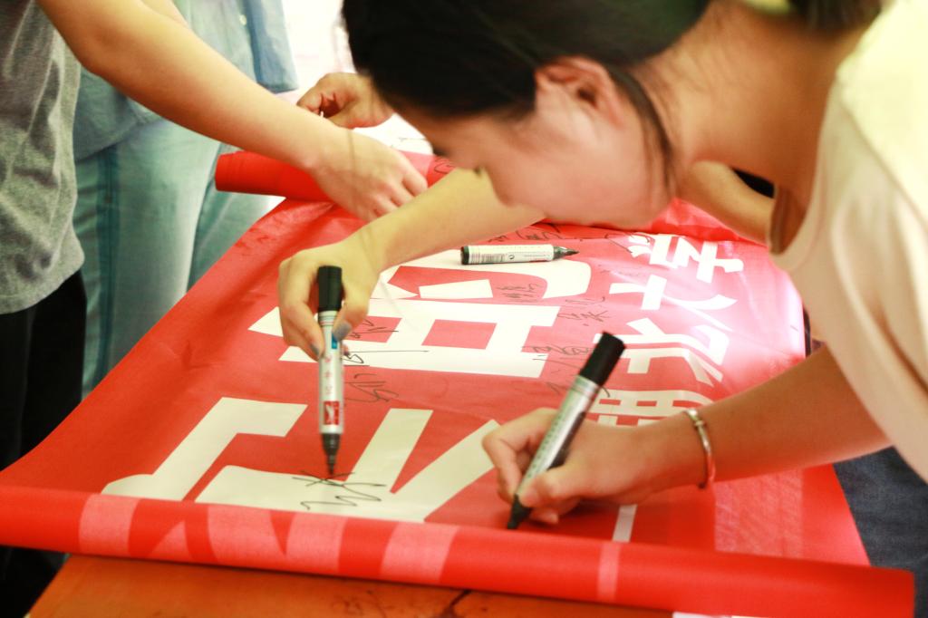 6月22日下午1:00到2:00,在三期忠诚学生公寓,举办了主题为“树立诚信之风,造就道德英才”的横幅签字仪式。此次活动由共青团太阳成tyc9728集团委员会主办,太阳成tyc9728集团青年传媒中心承办,旨在期末考试来临之际,宣传太阳集团网tyc9728近期颁布的新的学生考试纪律规定,端正考风考纪,加强学生道德素质培养,让同学们意识到考试的严肃性,了解到学校严抓考风的决心。