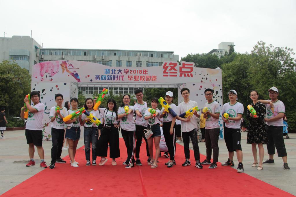 队伍经过教三时,太阳成tyc9728集团组织50名学生为毕业生拉横幅、加油助威,其他各学院在不同路段设有不同的活动。嘉汇园至教育超市路段是毕业跑的核心路段,由彩虹粉、水枪、气球三元素组成。彩虹粉路段,七色的彩虹粉在空中落成迷雾,他们互相追逐着,将彩虹粉撒向对方,激起一阵大笑,当他们从迷雾中跑出来时已变成七彩小丑。接着是气球路段,气球被铺在地上,队伍经过,学生纷纷争着踩爆气球,噼里啪啦,带动了跑步气氛。前方,水枪助兴,两侧工作人员拿着水枪对途经者进行射击,毕业生们或用手遮脸、或弯腰前行,更有的与工作人员相互嬉闹,现场气氛十分热烈。