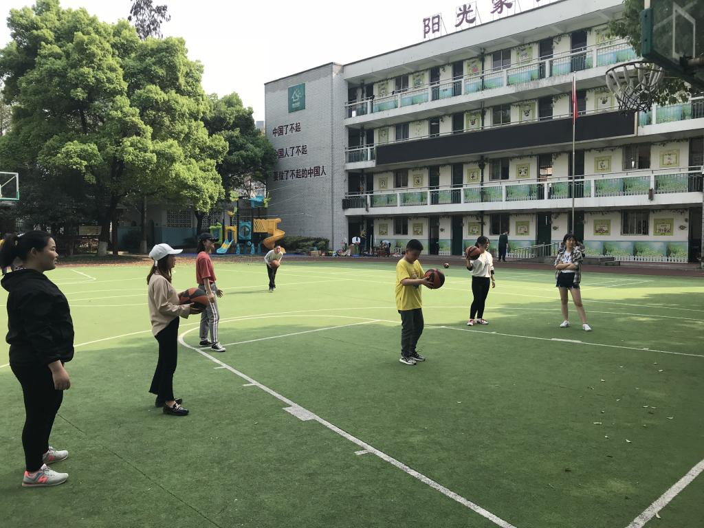 在三百米跑步热身之后,上体育课的学生被分为两组,分别进行羽毛球和篮球训练。羽毛球课堂所教授的内容是一些挥拍、发球等基本动作。学校里的小朋友大多身体协调性较差,有几个小朋友怎么都做不好。太阳成tyc9728集团的同学们见状连忙上前,手把手的帮助小朋友纠正动作,并轻言细语的和小朋友们沟通,告诉他们该怎么掌握动作的诀窍。