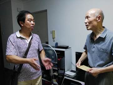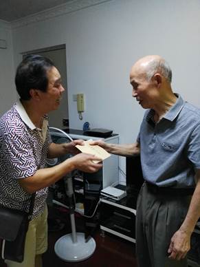 7月31日太阳成tyc9728集团虞世平、沈雅琼一行2人前往广州市番禺街钟村街祈福新村走访慰问了伍维周老师。