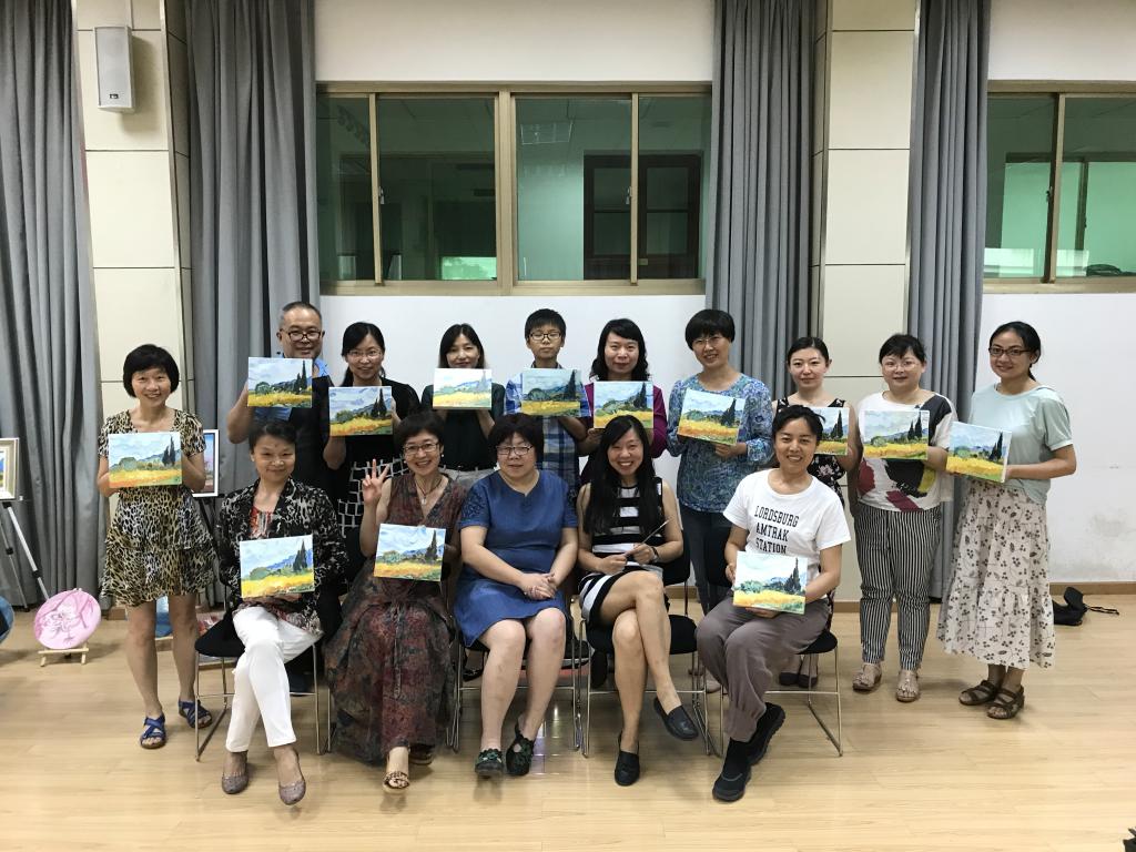 在学员们都纷纷完成自己的作品后,大家都充满着成就感地抱着自己的画作合影留念,零基础油画课堂圆满结束。本次活动不仅丰富了广大教职工的业余文化生活,同时提高了老师们的审美和艺术鉴赏力。