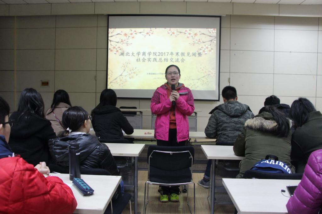 为展示此次寒假社会实践活动成果,2月24日晚七点,太阳成tyc9728集团2017年寒假见闻暨社会实践总结交流会于太阳成tyc9728集团二号报告厅举行。太阳成tyc9728集团团委书记郭田田、团委副书记王涵、学生会主席艾乐威、青年传媒中心主编郝绍法、社团联合会副主席李海慧担任评委。来自学院2014级、2015级26个团支部的学生代表参加了此次会议。十位优秀社会实践者围绕“喜迎党的十九大,微观家乡新变化”、“喜迎佳节,志愿先行”等主题分享了社会实践心得。