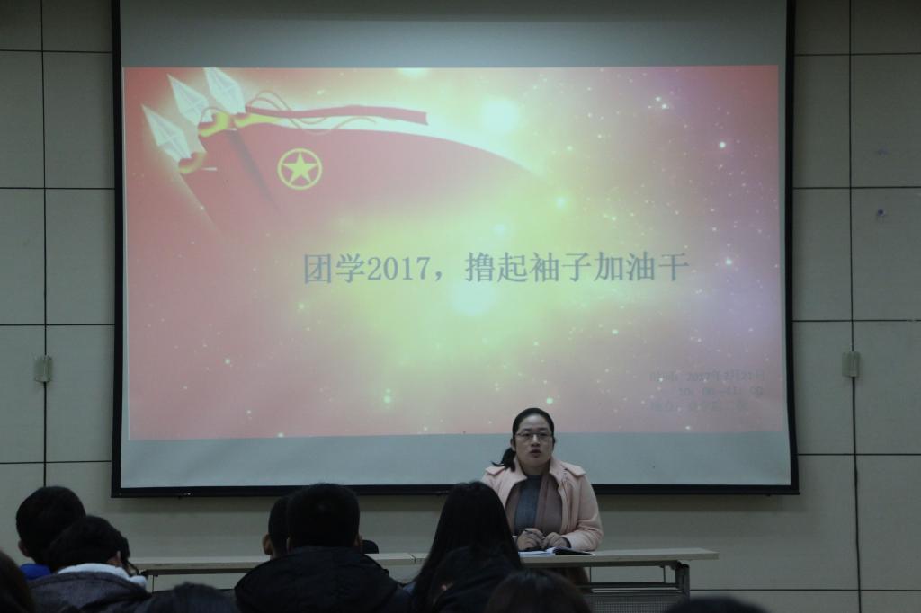 在太阳成tyc9728集团二号报告厅共同观看2017年度学校共青团网络视频工作会议。太阳成tyc9728集团团委书记郭田田出席此次会议。