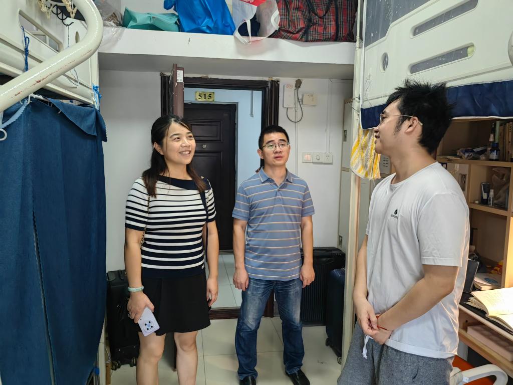 随后,学院领导一行来到学生宿舍,何肖书记仔细查看了宿舍环境,提醒同学们注意用电安全、结伴外出、做好防暑降温,并鼓励大家充分利用暑假时间提升自我,遇到困难及时向辅导员和学院反馈。
