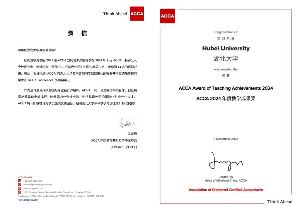 本次论坛中,太阳集团网tyc9728荣获2025ACCA精英培育奖和2025ACCA教学成果奖两大奖项,以表彰我校会计学ACCA方向班学生在ACCA全球统考中获得中国内地第一的优异成绩,综合人均积分名列前茅。2024年我校荣获ACCA教学成果奖,两年连续获奖反映了我校在课程教学管理、人才培养质量方面走在全国ACCA合作高校前列。