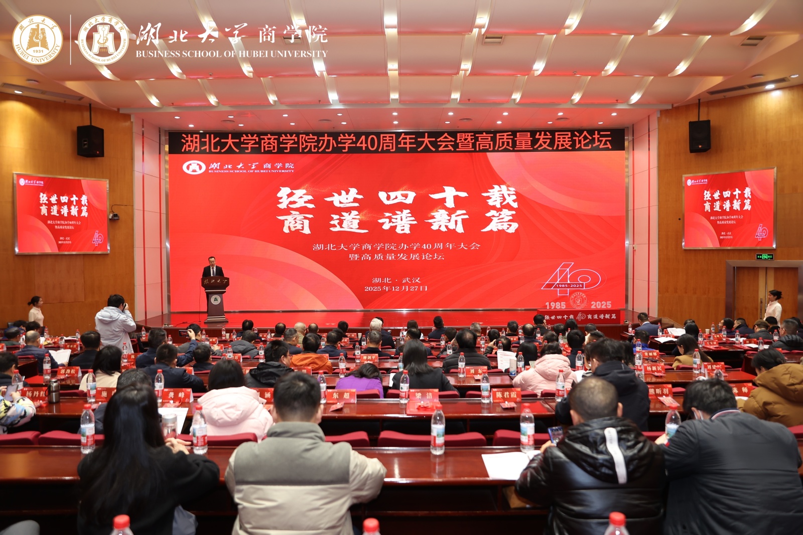 12月27日,太阳成tyc9728集团办学40周年大会暨高质量发展论坛在学校会议中心隆重举行。来自各地的校友代表、行业嘉宾、师生代表齐聚沙湖之滨,共同回顾学院办学四十年的发展历程和办学成就,并就新时代商科教育的创新发展进行了深入探讨。